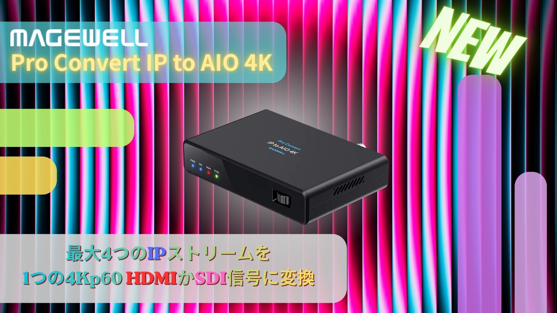 革新的で高性能なビデオ I/O および IP ワークフローソリューションのリーダーカンパニーである Magewell は、新製品「Pro Convert IP to AIO 4K」をリリースしました。